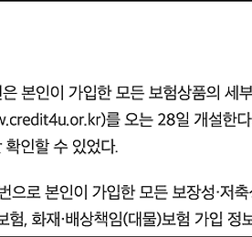 보험계약 썸네일형 리스트형 내보험 다모아 (www.credit4u.or.kr) 내 보험다모아 볼수 있다면?? 관련 기사 보기 내가 가입한 모든 보험상품들의 세부적인 보장내역을 한눈에 살펴볼수 있다면 무척이나 보험 상태를 체크하기 편리해지겠지요? 그동안에는 내가 가입했던 보험 종류가 무엇인지도 가물가물하고, 알고 있다고 해도 일일이 각각 사이트에 접속해서 공인인증서 등록하고 등등 무척이나 번거로운 과정을 거쳐야 겨우, 내 보험 내역을 확인할 수 있었습니다. 그런데 그럴 필요없이 한번에 한곳에서 모두 확인가능하다고 하니, 무척이나 편리한 서비스 (서비스명 : 내보험다보여) 가 연말에 하나 나왔네요. 이름도 "내보험 다보여" 무척이나 직관적입니다. (내 보험 다보여 서비스 이름 지은분 맘에 들어..ㅎㅎ) 내보험다보여 (www.credit4u.or.kr) 바로가기 내보험다보여 서비스 (c.. 더보기 이전 1 다음